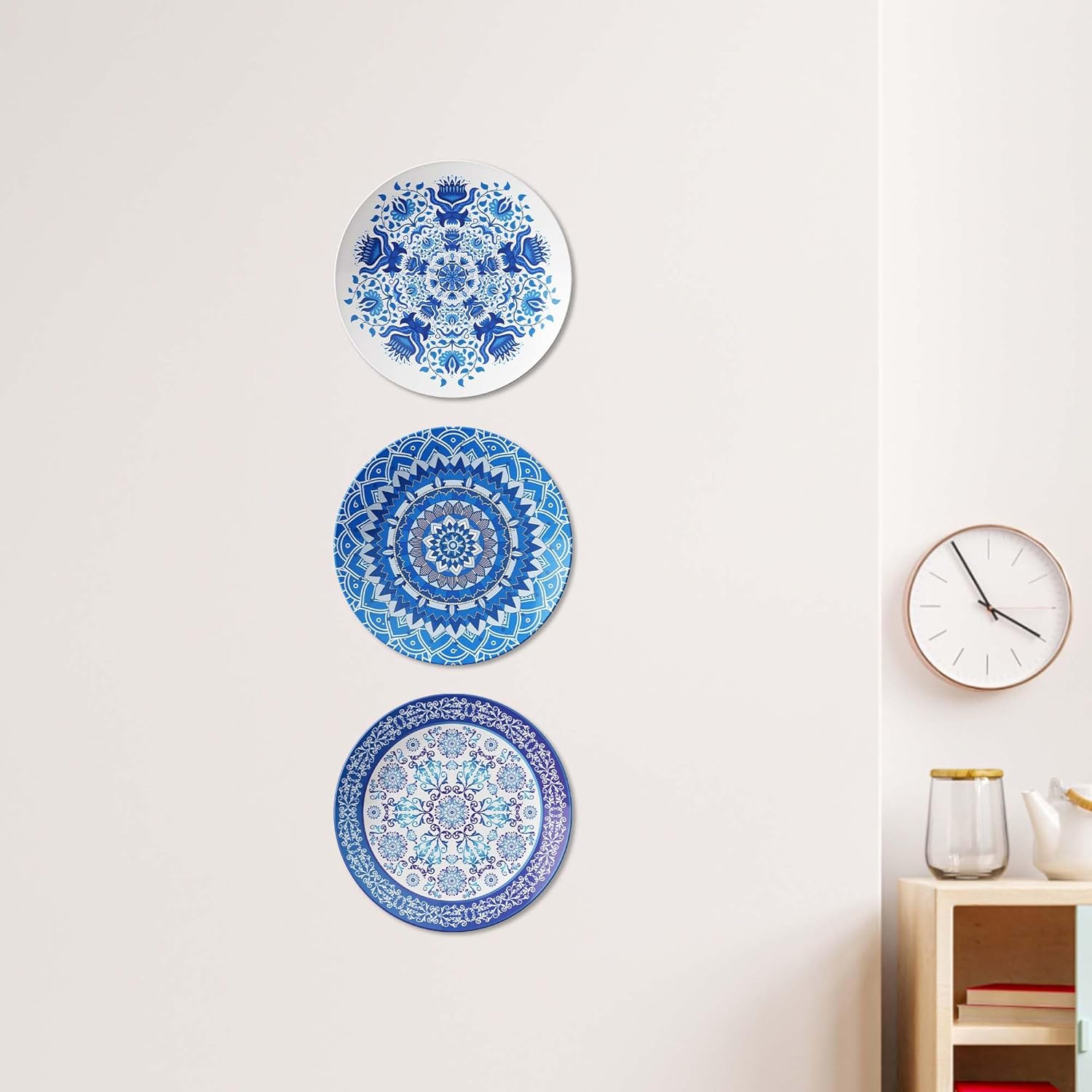 Blue Harmony: Chen Tai Style Decorative Plates, Set of 3 Decorative Ceramic Wall Plates, Combo No -115