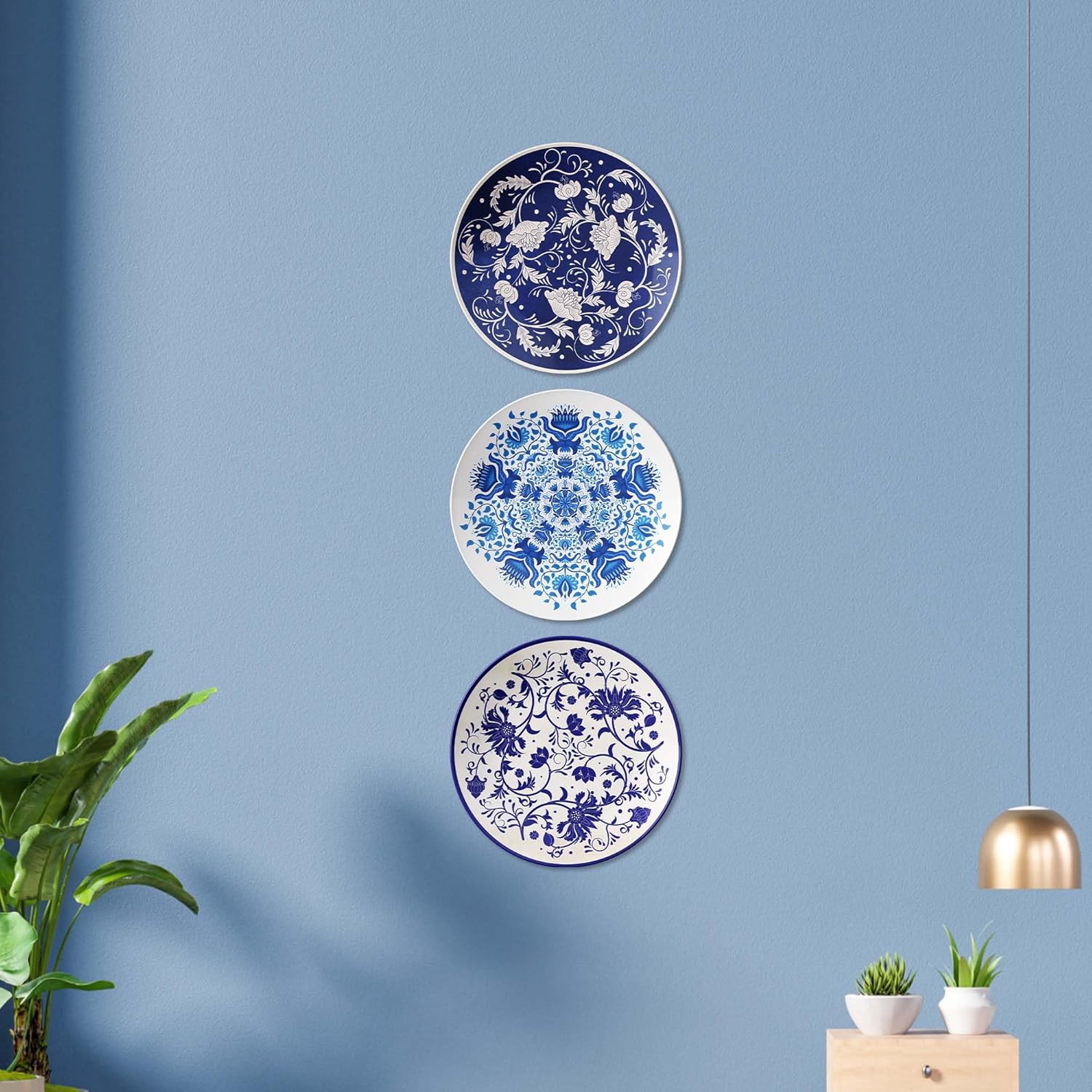 Floral Medallions in Blue and White, Set of 3 Decorative Ceramic Wall Plates, Combo No -109