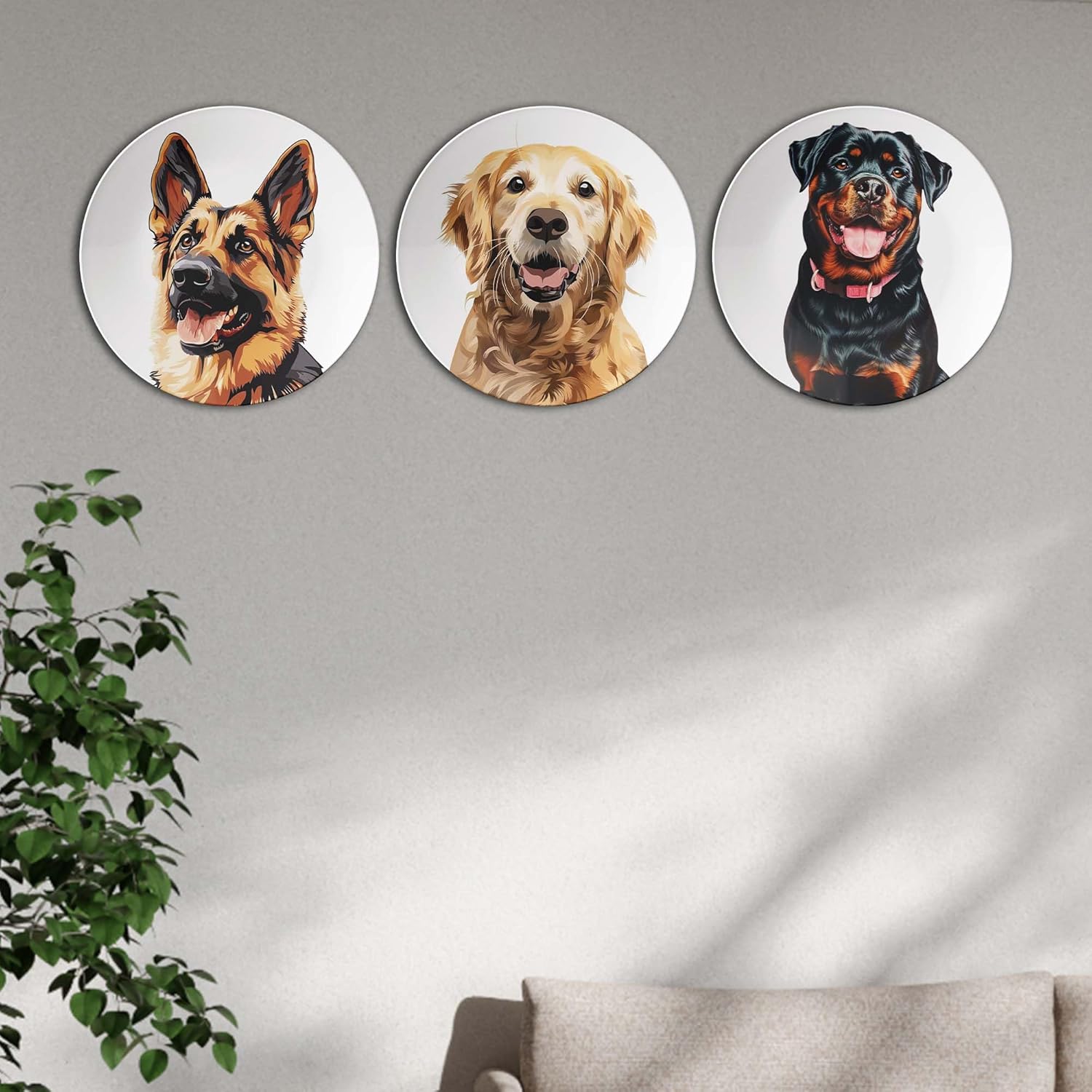 German Shepherd, Golden Retriever, and Rottweiler Plates, Set of 3 Decorative Ceramic Wall Plates