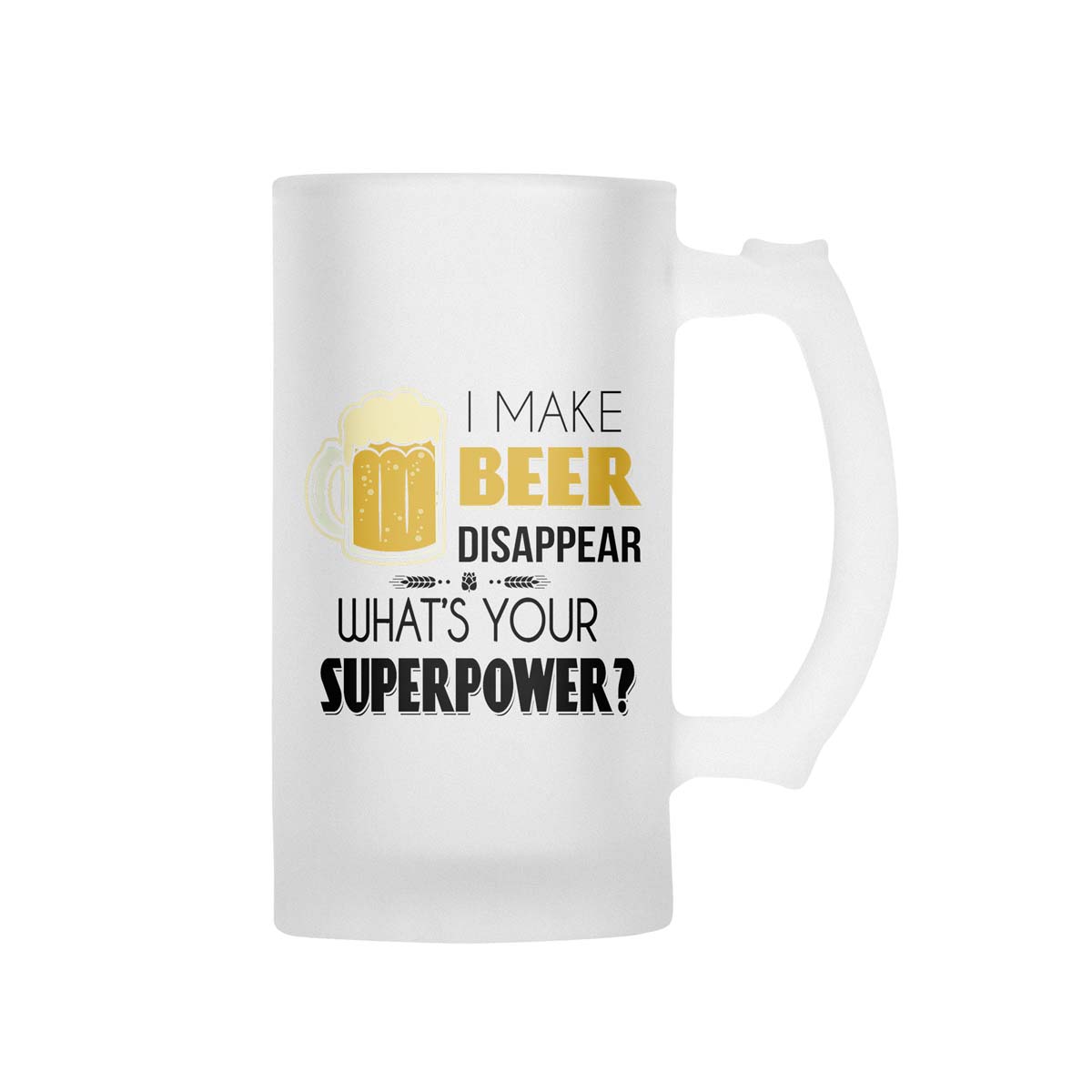 Be the first to review “I Make Beer Disappear What’s Your Superpower? Frosted Beer Mug”