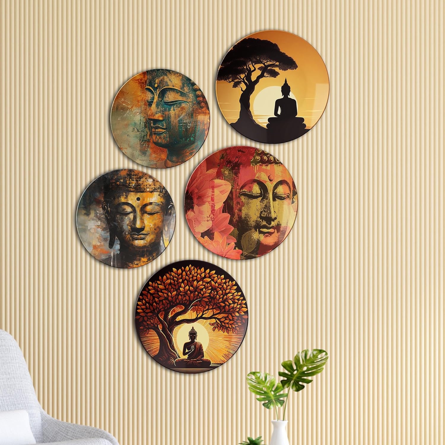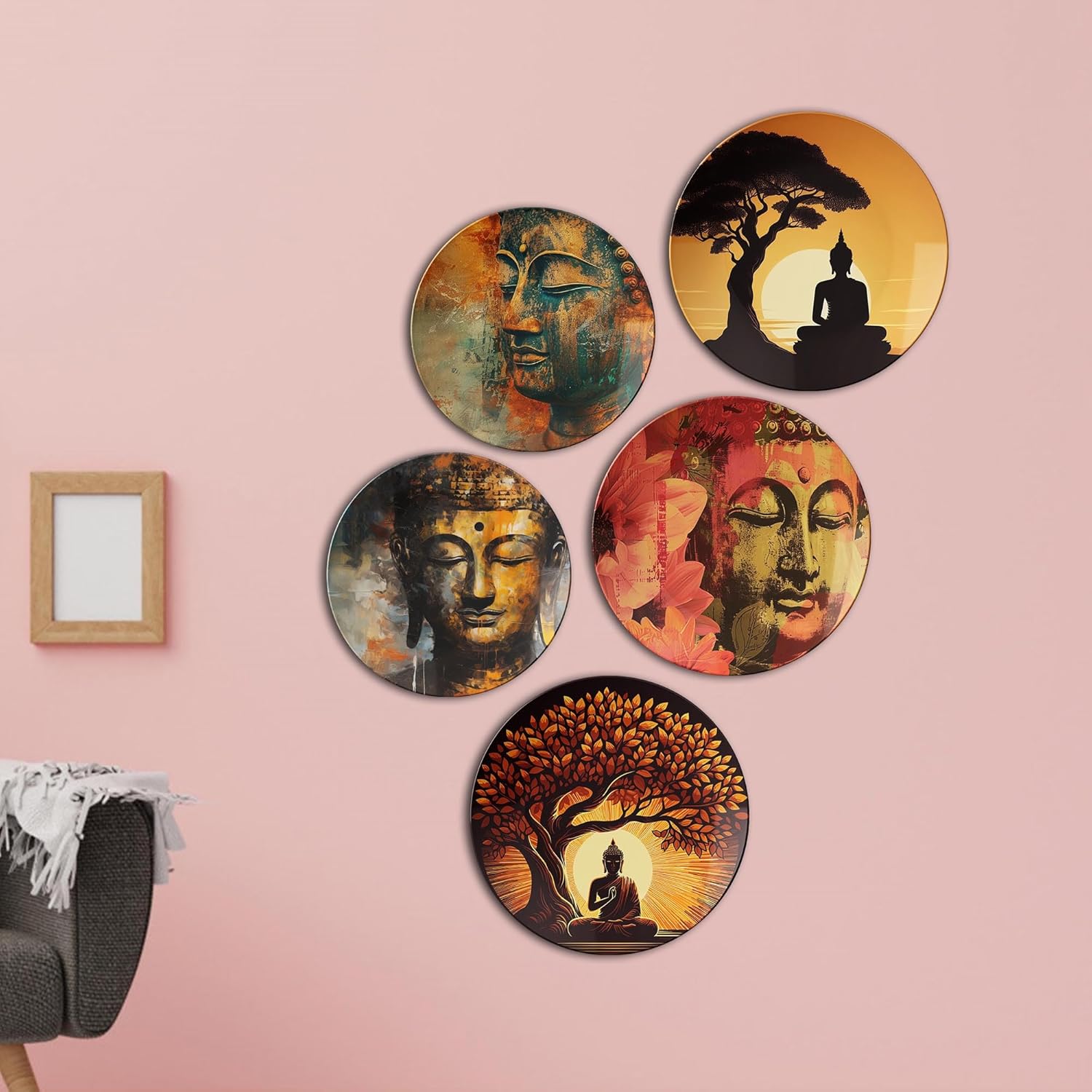 Enhance your home decor with this stunning Set of 5 Decorative Ceramic Plates, in a combination of 8-inch and 10-inch diameter. Adorned with intricate patterns and vibrant hues, these versatile plates complement modern, traditional, and eclectic interiors alike. Crafted from premium ceramic, they are lightweight yet sturdy, making them ideal for wall decor, table arrangements, or standout centerpieces. The set comes with convenient hooks for effortless wall mounting and sturdy stands for elegant tabletop displays.