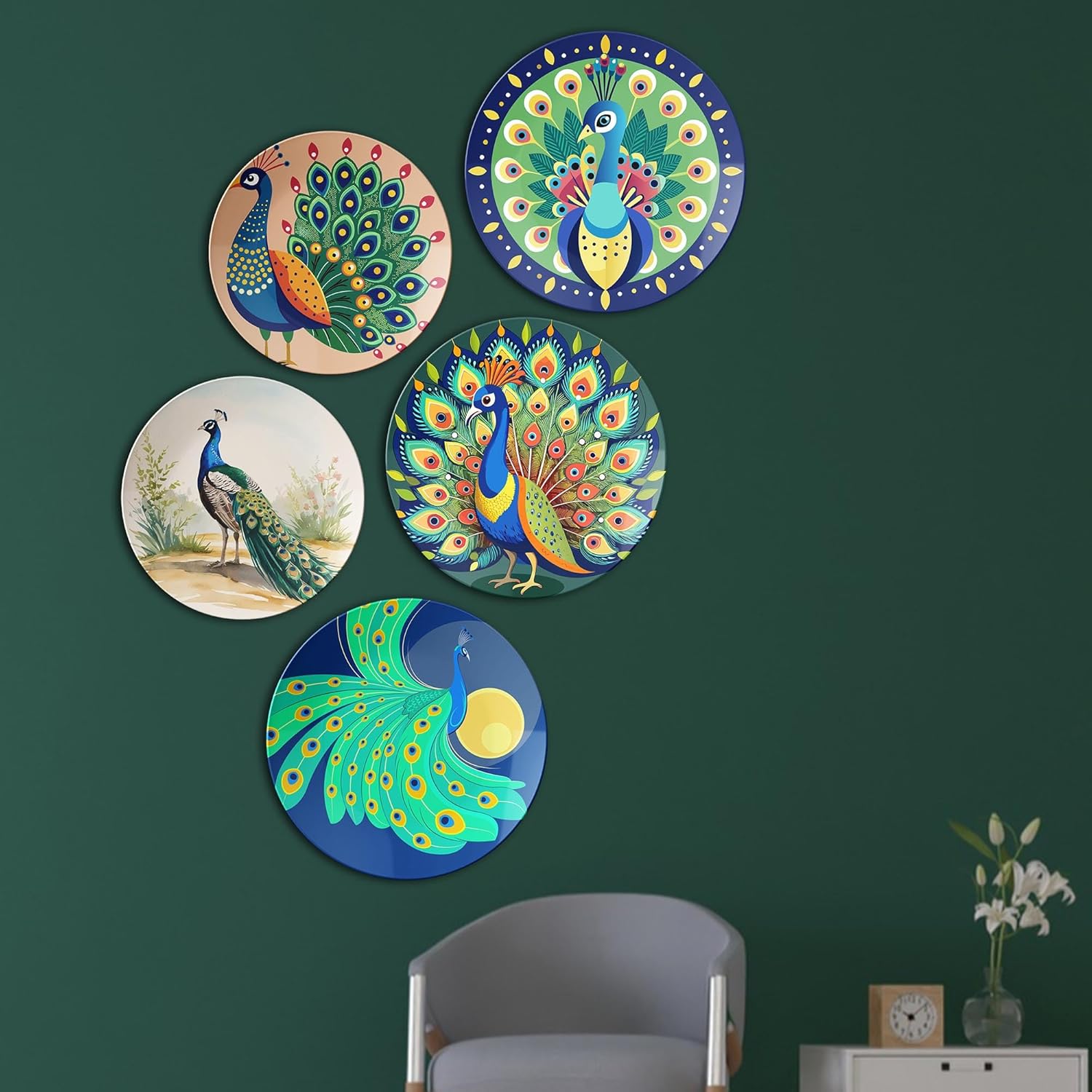 Majestic Peacocks | Home Decoration | Living Room Wall Decoration | Décor Items | Gift Items (Set of 5)