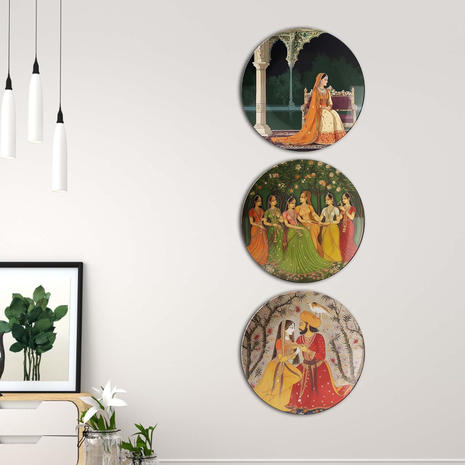 Mughal Majesty: Decorative Wall Plates, Set of 3 Decorative Ceramic Wall Plates, Combo No -66