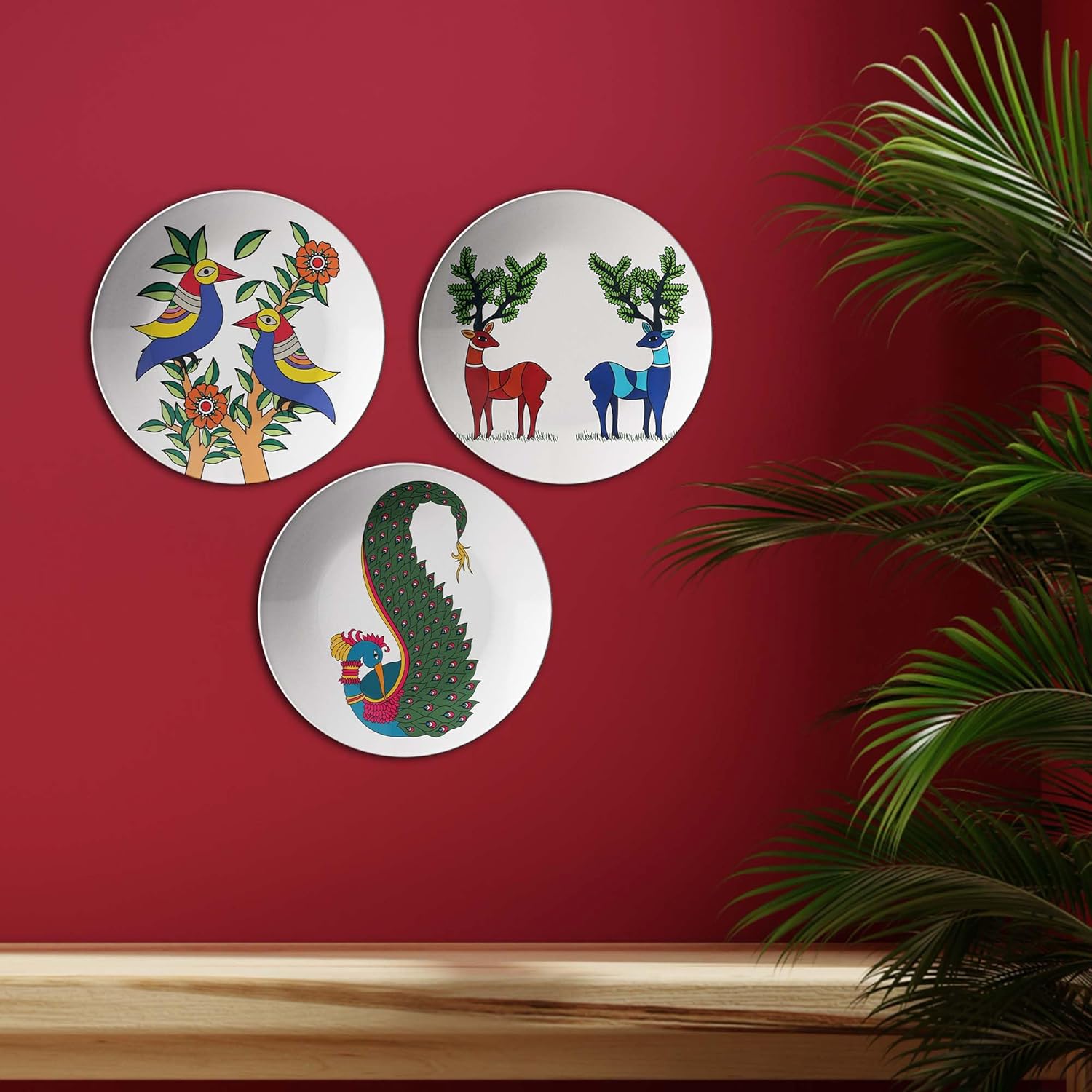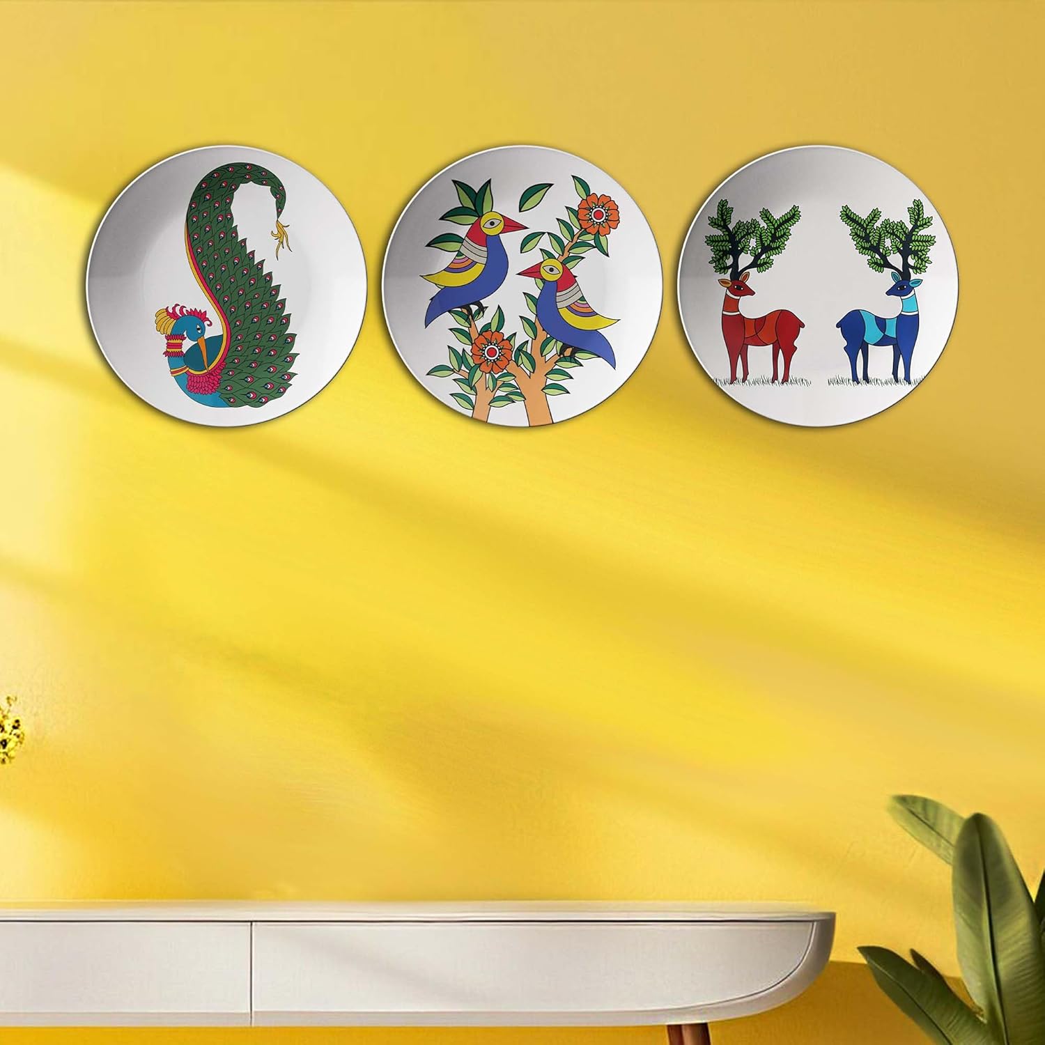Nature’s Canvas: The Great Indian Forest Plates, Set of 3 Decorative Ceramic Wall Plates, Combo No -65
