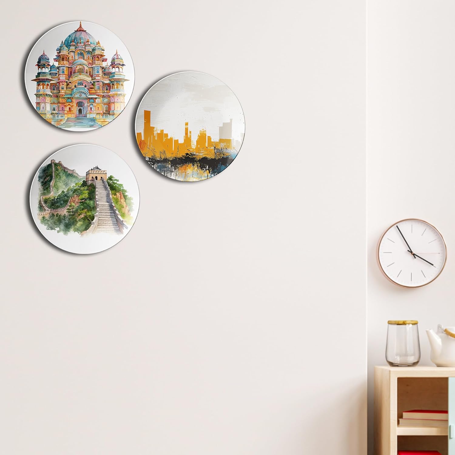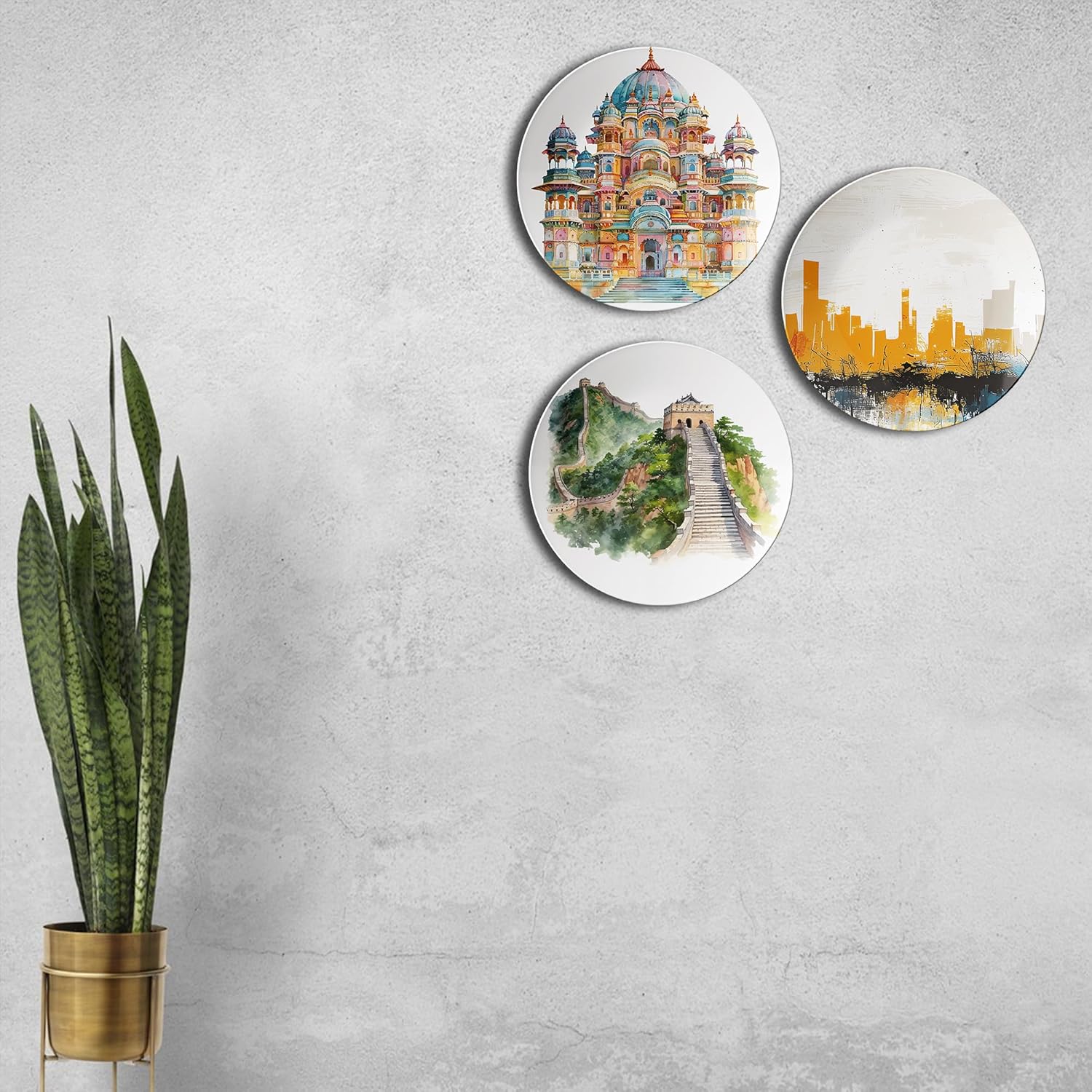 Plates with Iconic Buildings Decorative Ceramic Wall Plates Set of 3.