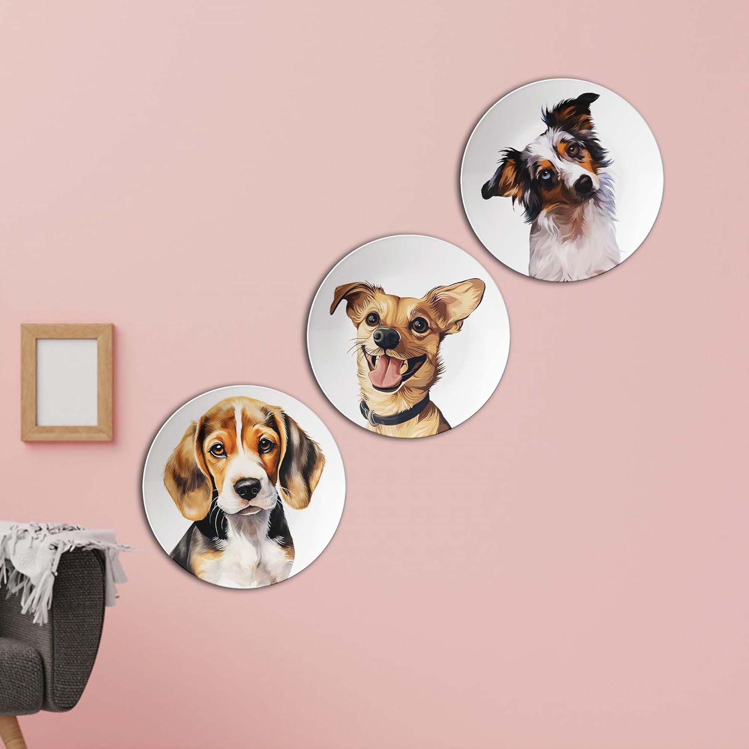 The Beagle, the Terrier, and the Spaniel Mix, Set of 3 Decorative Ceramic Wall Plates