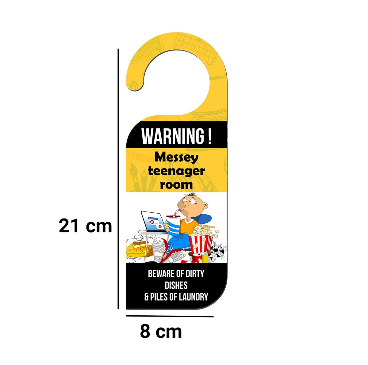 Warning ! Messey Teenager Room Knob Hanger Door Tag Sign